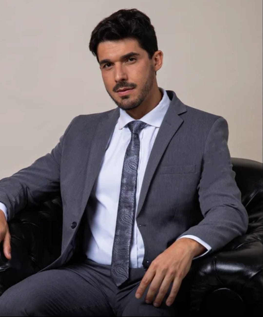 Terno de Poliviscose. Trabalhamos apenas com ternos de alta qualidade em tecido, pois o tecido de poliviscose tem maior durabilidade e resistência, sem contar que permite que o corpo respire. A modelagem dos nossos ternos são Slim e possuem uma abertura nas costas para a sua maior mobilidade.